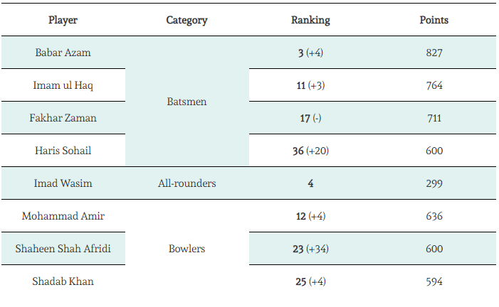 Imam ul Haq, Imad Waseem, Shadab Khan and Haris Sohail have improved their rankings in various categories. The viewers can find the detail of the updated rankings for Pakistani players, who gave wonderful performance in the World Cup.