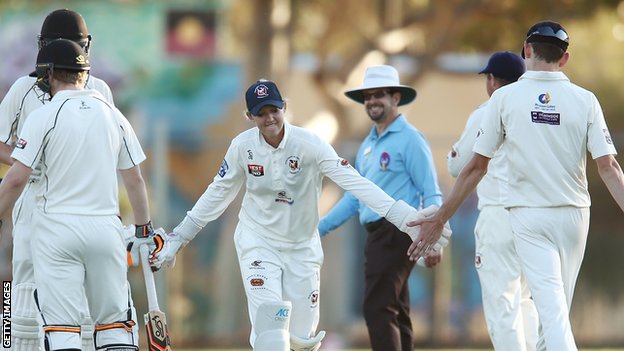.@Sarah_Taylor30 – the first woman to play A-grade men’s cricket in Adelaide. #7NewsAdl http://t.co/9WXQCQY9ip