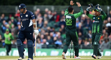 When Ireland started its inning, the opening players, Kayl Coetzer and George Munsey started the opening stand and took the total to 53 runs. Coetzer made 31 runs and Muhammad Nawaz took his wicket while Hassan Ali took the wicket of Munsey, who made 25 runs. Then the spinning attack of Pakistan could not let the host team to control their inning and the Scottish wickets were fallen from time to time. Richie Barrington made 3 runs and Colum MacLeod scored 12 runs and both the players became the target of Shadab Khan. Dylan Budge scored 24 runs while Leask and Matt Cross made the partnership of 43 runs for the 6th wicket. After that their wickets were fallen with regular team and whole Scottish team was out at 156 runs and Pakistani cricket team won the match by 48 runs.