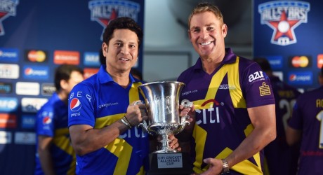 Warne’s Warriors: Matthew Hayden, Jacques Kallis, Ricky Ponting, Kumar Sangakkara, Jonty Rhodes, Michael Vaughan, Daniel Vettori, Wasim Akram, Ajit Agarkar, Shane Warne (C), Allan Donald.