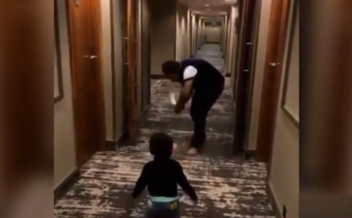 The video of the son of Pakistani cricket team captain, Sarfaraz Ahmed has been uploaded on the internet. In this video, the 2 years old, Abdullah son of Pakistani skipper, Sarfaraz Ahmed is playing the cricket with his papa in a hotel.
